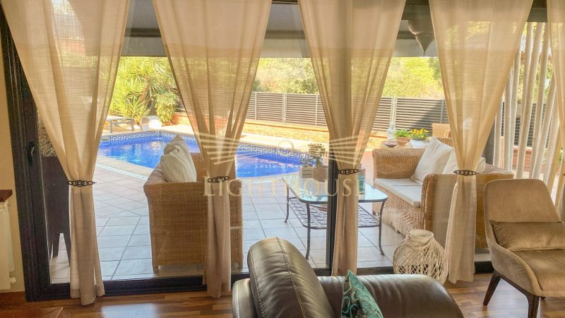 На территории можно наслаждаться мягким климатом круглый год: частный бассейн, солнечная терраса и зона барбекю, идеально подходящая для встреч с близкими и друзьями.
