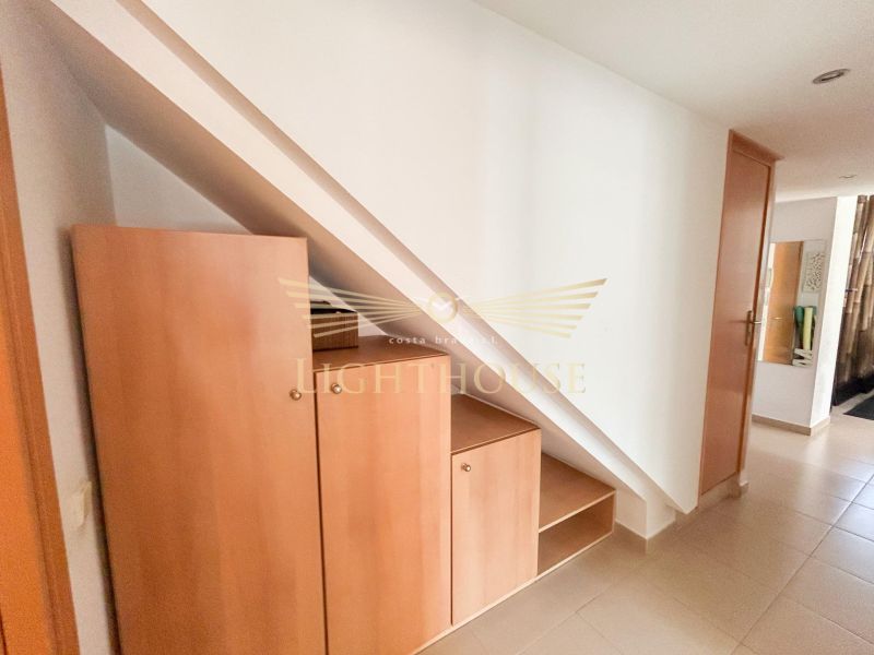 Продаётся стильный двухэтажный пентхаус-дуplex общей площадью 102 м² (92 м² полезной), расположенный на четвёртом и пятом этажах пятиэтажного дома с лифтом в одном из лучших районов города. В квартире три уютные двухместные спальни, одна из которых – с собственной душевой кабиной и выходом на солярий-террасу, просторный светлый салон-столовая с южным балконом и видом на бассейн, а также отдельная полностью оборудованная кухня и современная ванная комната. В каждом помещении установлены кондиционер и отопление для комфортного проживания круглый год. В стоимость включены удобное парковочное место и кладовка в охраняемом подземном паркинге. Отличное предложение как для постоянного проживания, так и для сдачи в аренду!