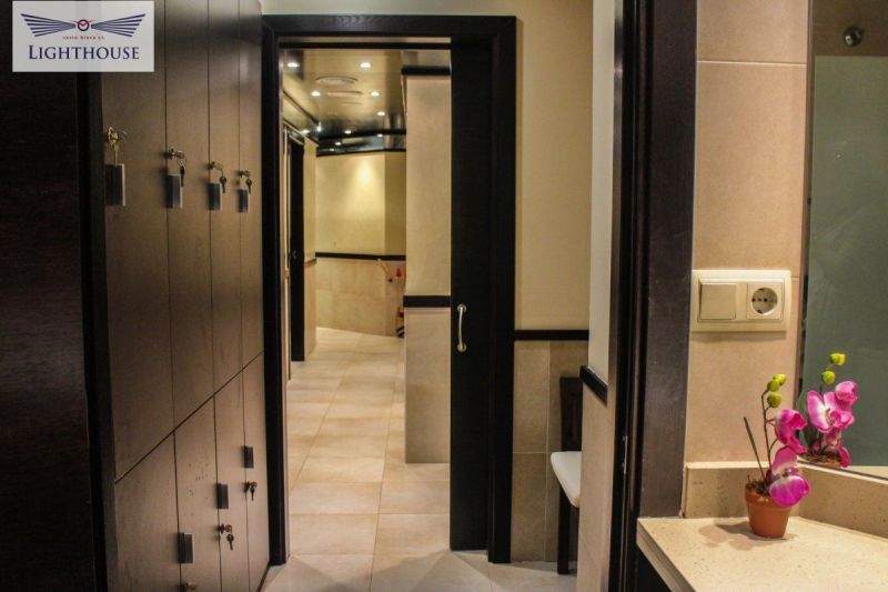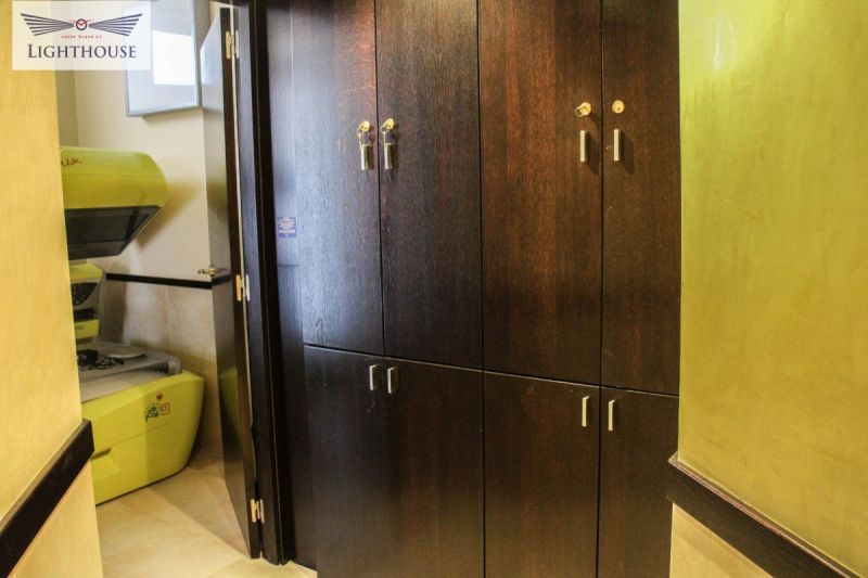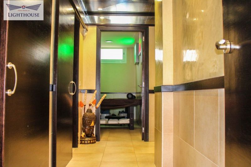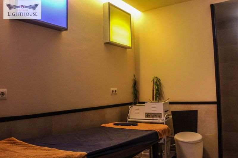 Коммерческое помещение в данный момент полностью экипировано под центр красоты, распределенно на 7 помещений, просторная прихожая с местом для ожидания клиентов, зона приёма с небольшим складом а также отделённая зона в данный момент используемая как кабинет. Проходя дальше по коридорѠ справа расположены два помещения в данный момент используемые как ванные комнаты с шкафчиками для личных вещей. Далее расположена рабочая зона с несколькими кабинетами для косметических услуг. Все кабинеты полностью оборудованы всем необходимым. Так же в центре красоты есть кабинет оборудованный под солярий. Важно заметить , наличие террасы примерно 20 м2 для отдыха клиентов после процедур и так же наличие небольшой кухни . Помещение расположено на проходной улице с лёгким доступом по главной дороге соединяющей города Бланес , Льорет-де-Мар и Тосса-де-Мар.
