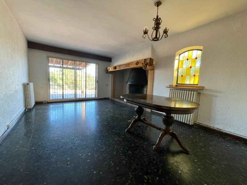 - Светлая гостиная-столовая с камином и прямым выходом на большую террасу.